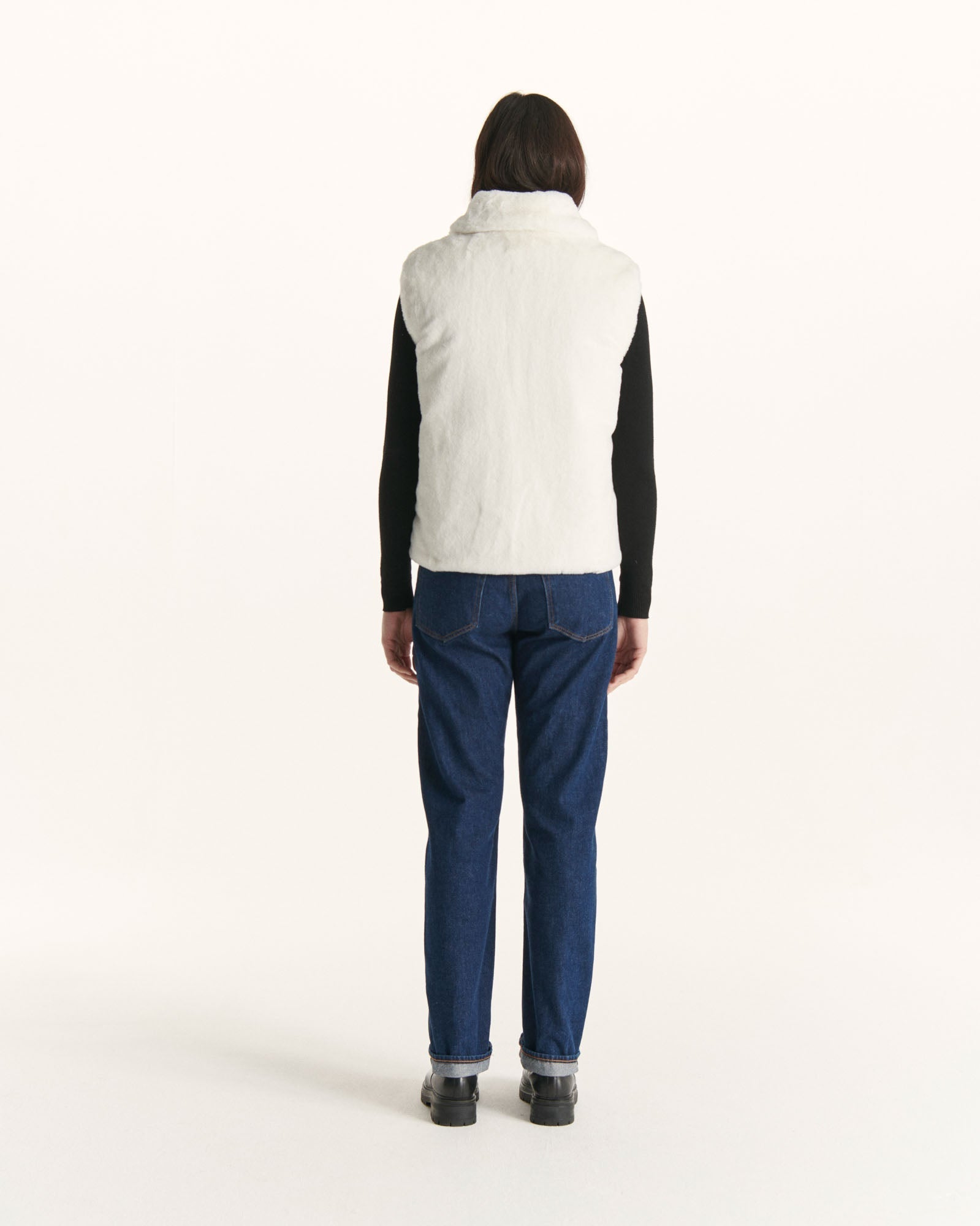 Chaude et modulable, la veste sans manches « Grand Froid » DARIA 2.0 de notre capsule ornée de cristaux Swarovski®️ en édition limitée viendra se poser sur tous vos sweats, pulls et vestes préférés. Réversible, on choisira de la porter, selon l’humeur, sur sa face en sherpa bien douce, ou sur celle au look urbain au matelassage à larges bandes. Réalisée en matière synthétique 100 % recyclée, elle possède un col montant bien haut que l’on peut rabattre lorsqu’il est ouvert. Quelle que soit la face choisie, le col est en sherpa pour un style d’une absolue originalité.